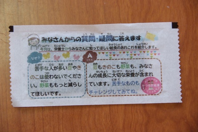 今月の味付け海苔は、皆さんの給食に関する質問に栄養士が回答しています。全部で4パターンあるので、みんなでどんな内容があるか見てみてね。