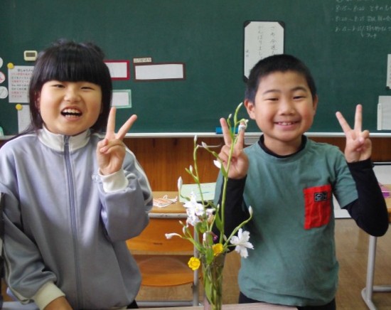 今朝4年生が教室にと、花を持って来てくれました。登校中手に持って、学校まで持って来てくれたのです。