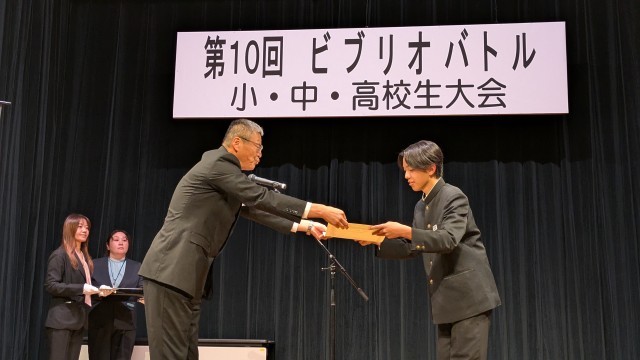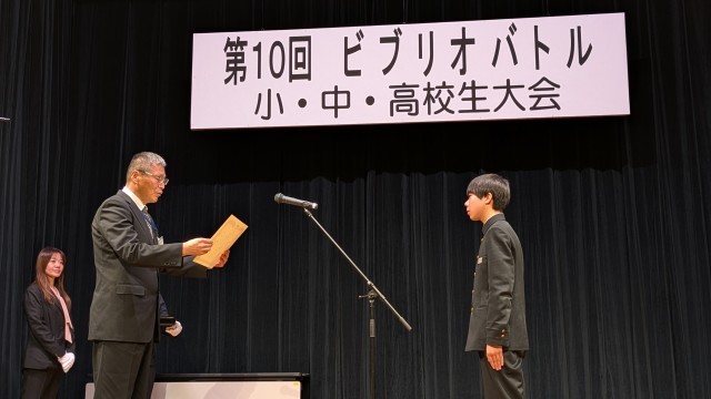 紹介本10冊の中から、本校3年生福岡さんの紹介した「バナナの魅力を100文字で伝えてください」がチャンプ本、3年生和田さんの紹介した「なぜ、穴を見つけるとのぞきたくなるの?」が準チャンプ本として選出されました。おめでとうございます!