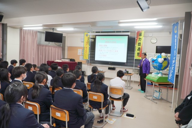 伊都高野口ライオンズクラブの方々に来ていただき、1年生対象に「薬物乱用防止教室」を開催しました。