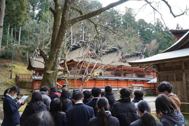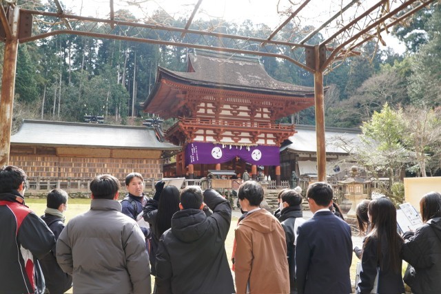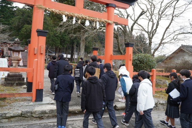 クラスごとに丹生都比売神社と歴史民俗資料館を巡り、一生懸命に話を聞きながらメモをとり、かつらぎ町の歴史や文化について学習を深めました。