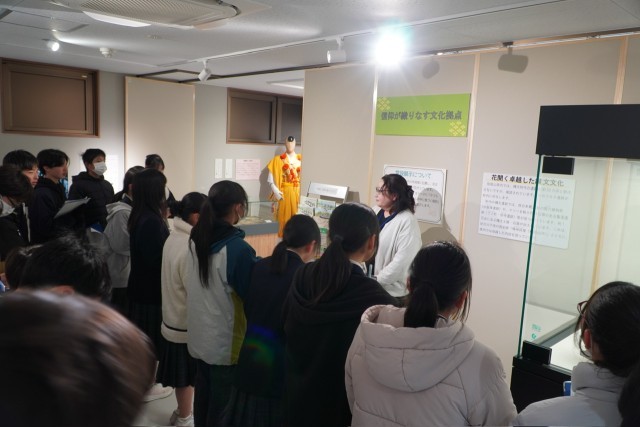 1年生の地域学習として、天野の歴史民俗資料館と丹生都比売神社を訪れました。歴史民俗資料館は昨年11月にオープンした文化財拠点施設の本館で、展示を通して郷土の歴史について学ぶことができる場所です。