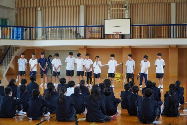 今年度の委員会での話し合いはまだ行われていませんでしたが、2年生と3年生が自主的に校門に立ち、元気にあいさつ運動を行いました。