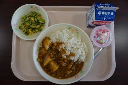 カレー(豚もも肉、人参、じゃがいも、グリンピース、しめじ)