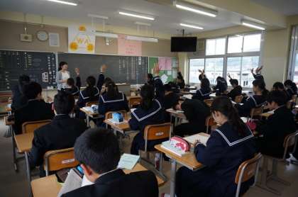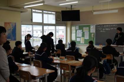 少し疲れも出てきている1年生。写真下は2年生英語。読む書く+聞き取り話す力が試されます。
