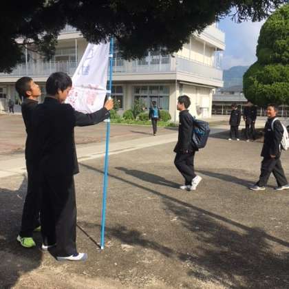 手づくり 幟旗で気運を盛り上げてくれた社会委員さん
