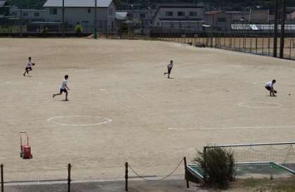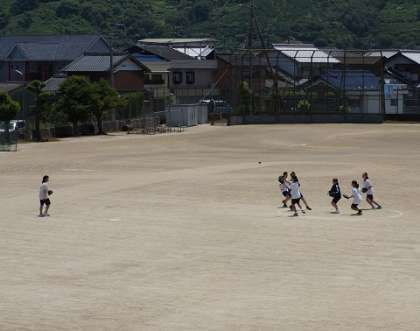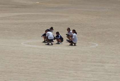 今日の体育は強烈な日射しです。