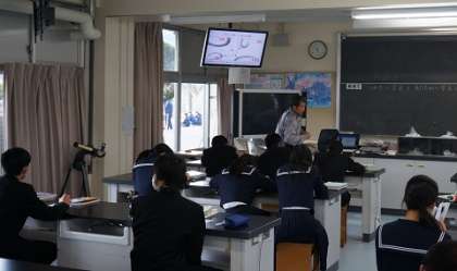 延べ7時間の持久走を自分の設定時間で走る2A体育の横で、2Bは冷たい気団と暖かい気団がぶつかるとどうなるかを考えていました。