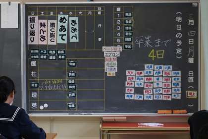 両クラスとも登校する残りの日数が書かれています。