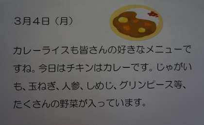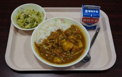 ◎カレー(若鶏のもも皮つき、人参、玉葱、じゃがいも、グリンピース、しめじ)