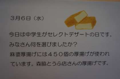3/6(水)今日の給食はセレクトデザート付き!