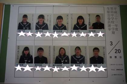 本格的な選挙ポスターが掲げられました。写真付き公約入りポスターです。