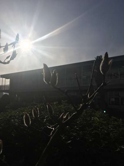 三校ともしっかりと歌声の響くすばらしい卒業式でした。お迎えする中学校として、身を引締めて、大切なお子さまのご入学をお待ち申し上げております。入学式は4/10(火曜日)午前9:30〜笠田中学校体育館です!写真は今朝の笠田中学校舎と中庭の木蓮です。