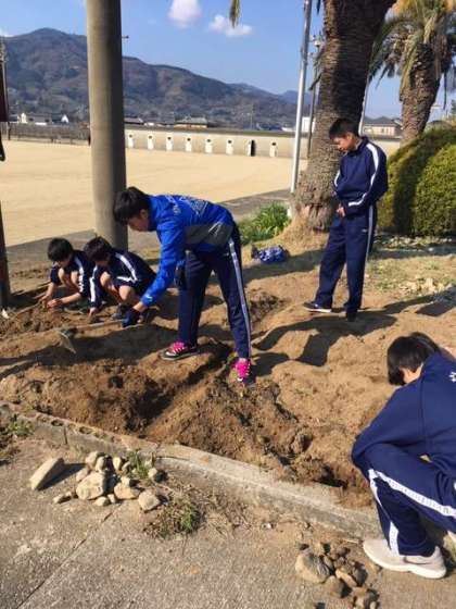 朝早くからクラブ活動前に耕してくれいる陸上部さん有志です。