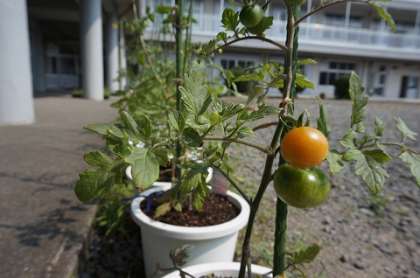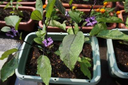 茄子にトマト、観賞用の花も育っています。