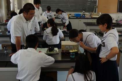 ほぼ毎時間、理科室において実験が実施されています。