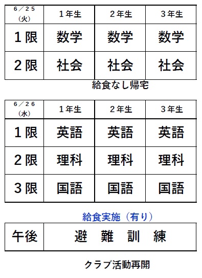 中間テストの時間割