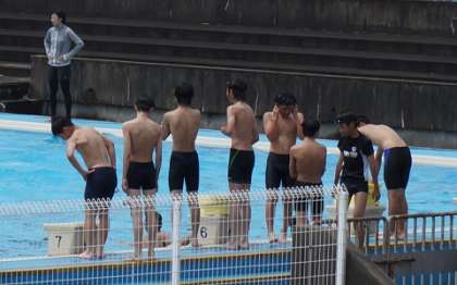 2年生体育水泳授業 公開日 2019/07/08 更新日 2019/07/08 学校の様子 焼けるような夏の陽射しの中での水泳授業です。25mクロールを順に笛の合図で泳いでいきます。みんなしっかりと泳げます。
