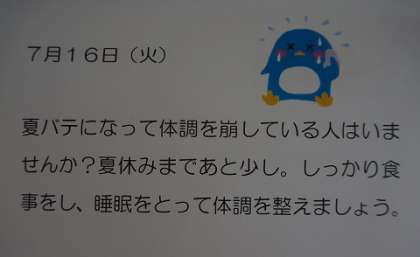7/16(火)今日の給食 公開日 2019/07/16 更新日 2019/07/16 給食 ○玄米ごはん ○ポークカレー 豚もも肉・人参・玉葱・じゃがいも・グリーンピース・しめじ ○胡瓜とコロコロサラダ ○牛乳 895kcal