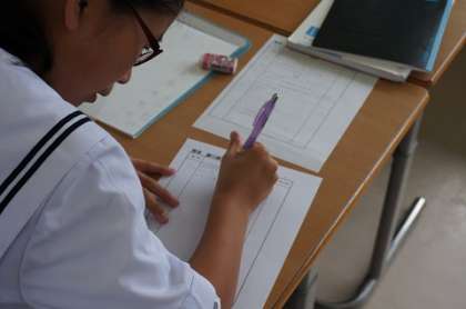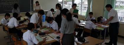 「主体的・対話的で深い学び」となる授業の実現に向け研究している本校学力向上部会による提案授業のようす。