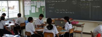 自分たちの学校の特色を英語で発表する準備をしていました。