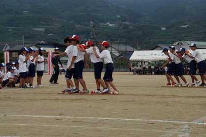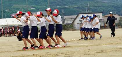 すっかり中学生らしくなりました。1年生の演技、4人5脚&ムカデ競走です。