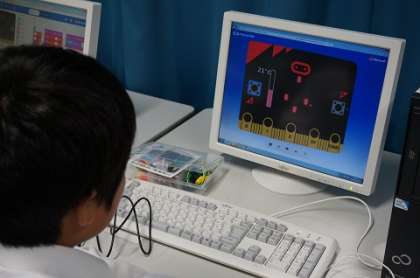 情報教育でプログラミングを学んでいます。今年度から micro:bit(マイクロビット)という優れ物のカード式チップを使用します。たくさんのセンサー機能と汎用性のある端子機能がついています。和歌山県とかつらぎ町の努力で一人1枚が提供されています。