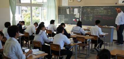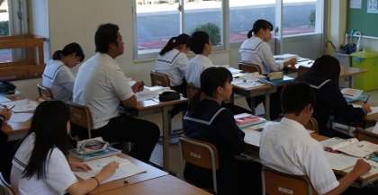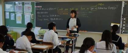 上段は英語 Could you tell me how to get to KOKURITSU-KYOUGIJYO? 下段は社会公民、三権分立の国会についてでした。