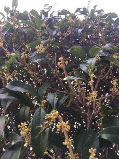 生徒棟北側のキンモクセイ達が一斉に開花してよい香りを放っています。
