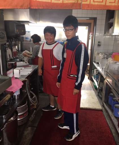 かつらぎ町の名物店「二軒目飯店」さんで頑張っています。大きな声を習得しました。