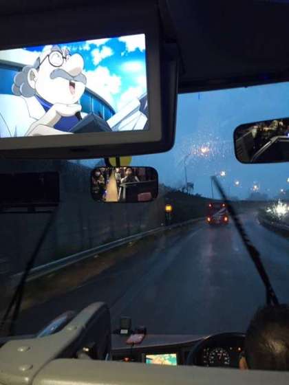 お菓子OK連絡とビデオタイムにするというアトラクション連絡が入りました。