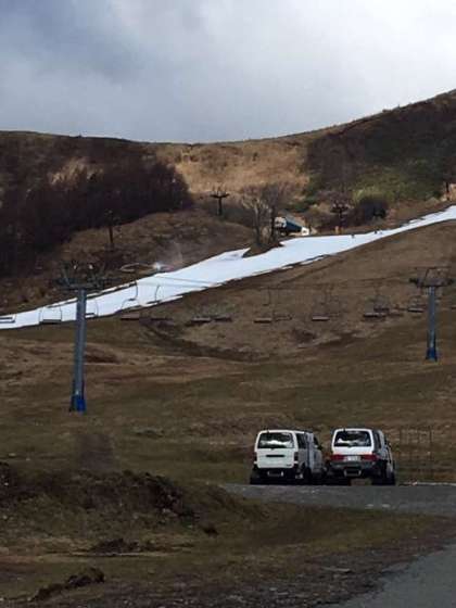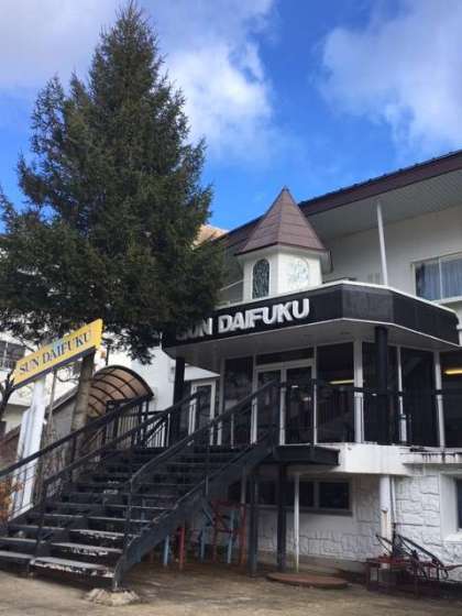 時折青空も見えるハチ高原スキー場です。お世話になるサンダイフクさんにご挨拶をし、11時半から昼食をとります。