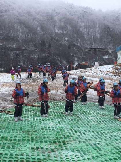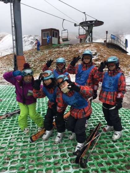 最初はグラススキーで基本練習。今のところゲレンデは我が校のみです。