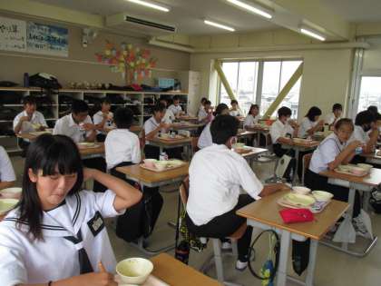 1年生のようす 公開日 2020/06/30 更新日 2020/06/30 学校の様子 1年生の給食のようすです。入学してすぐは、給食の量が小学校のときよりも多く、時間内に食べ終わるのが大変でしたが、最近ではおかわりをする生徒も増えてきて、たくさん食べてくれています。