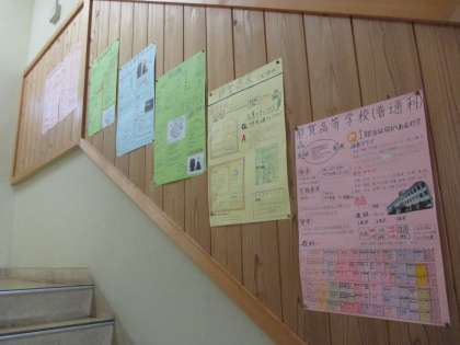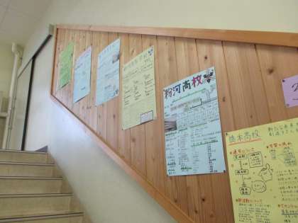 3年生の上級学校調べのまとめたポスターが掲示されています。