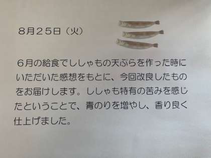 8/25(火)今日の給食
