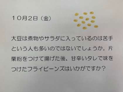 10/2(金)今日の給食 公開日 2020/10/02 更新日 2020/10/02 給食 ・コッペパン ・具だくさんコンソメスープ ・ポパイサラダ ・フライビーンズ ・お月見大福 ・牛乳 877kcal