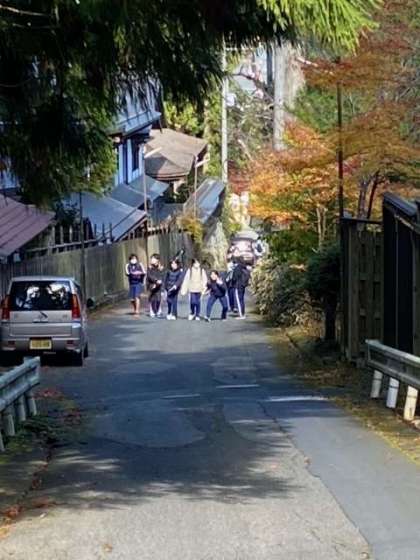 ?昼食場所にどんどん生徒到着してます