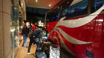 先程、ホテルへ着きました。このあとは19時より夕食をとります。