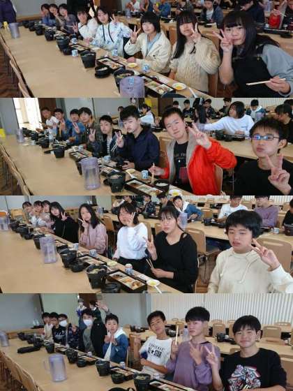 とれとれ市場にてお昼ご飯を食べています!これが、今回皆で食べる最後の食事になります。このあとはとれとれ市場でお買い物の予定です。