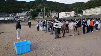 修学旅行最後の行程、地引き網です。頑張って引いてる写真は後程紹介します!