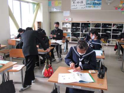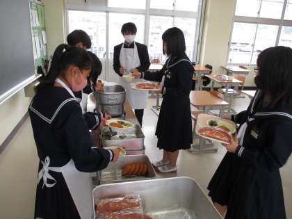 1年生のようす 公開日 2020/11/13 更新日 2020/11/13 学校の様子 1Aは英語の授業で、グリーティングカードの作成を行いました。 1Bは給食のようすです。給食の準備もスムーズにできています。