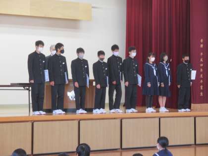 中間テストの後、秋季新人大会や耐久リレー大会の表彰伝達を行いました。