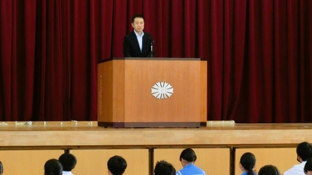 1時間目の始業式では、校歌斉唱続いて、校長先生から「これから取り組む多くの学校行事に向けて、大変ですが『感動』を合言葉に頑張りましょう」とお話がありました。
