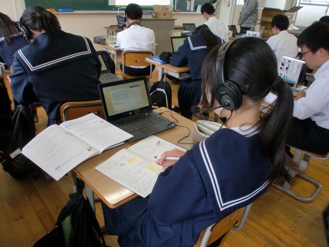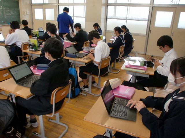英語科では、来週に控えた「英検・IBA」に向けて、パソコンを使った「writing」や「speeking」の練習をしています。