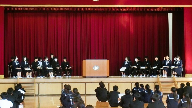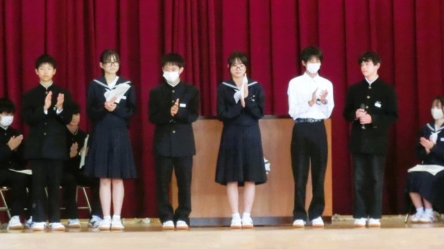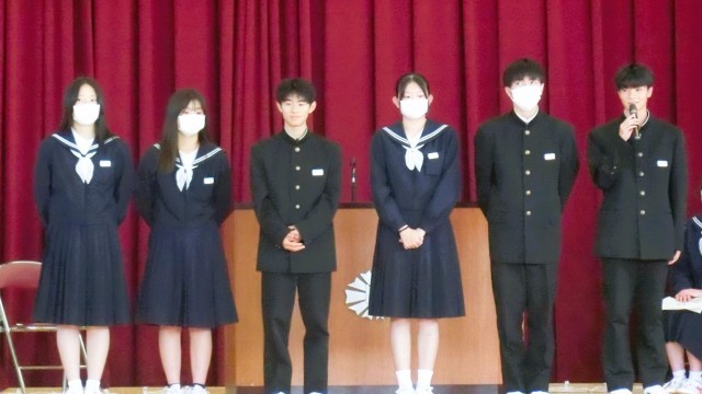 1学期専門委員会からの報告のあと、半年間頑張ってくれた1学期生徒会執行部の皆さんから退任の挨拶がありました。