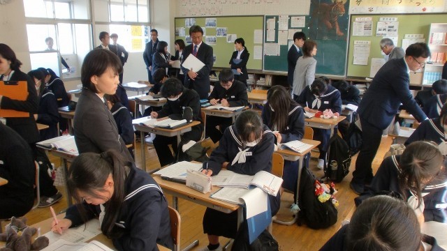 今日は学校訪問があり、朝から教育委員会の方が授業の様子などを見に来られました。