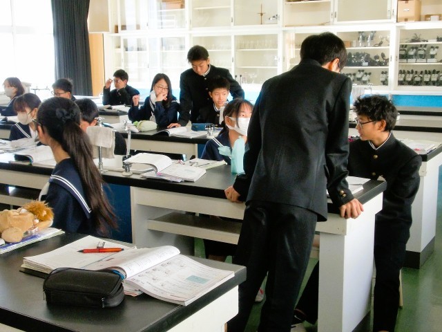 1Aは理科で、ばねの強さの説明について、友達と話し合いをしています。