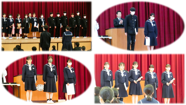 体育館では全校集会が行われ、校長先生のお話に続いて表彰伝達を行いました。