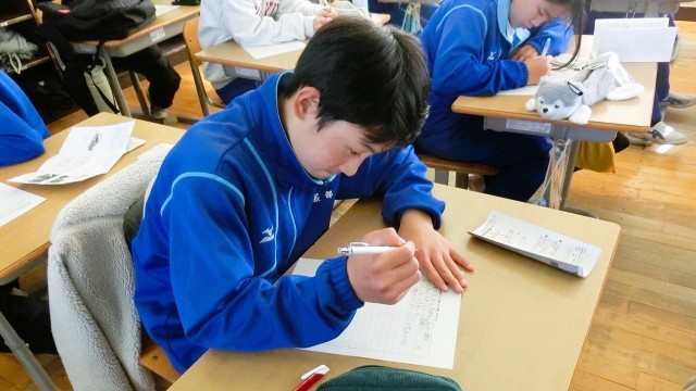 最後に、学校へ戻り、教室で学んだことを振り返り、ワークシートにまとめて学習を終えました。